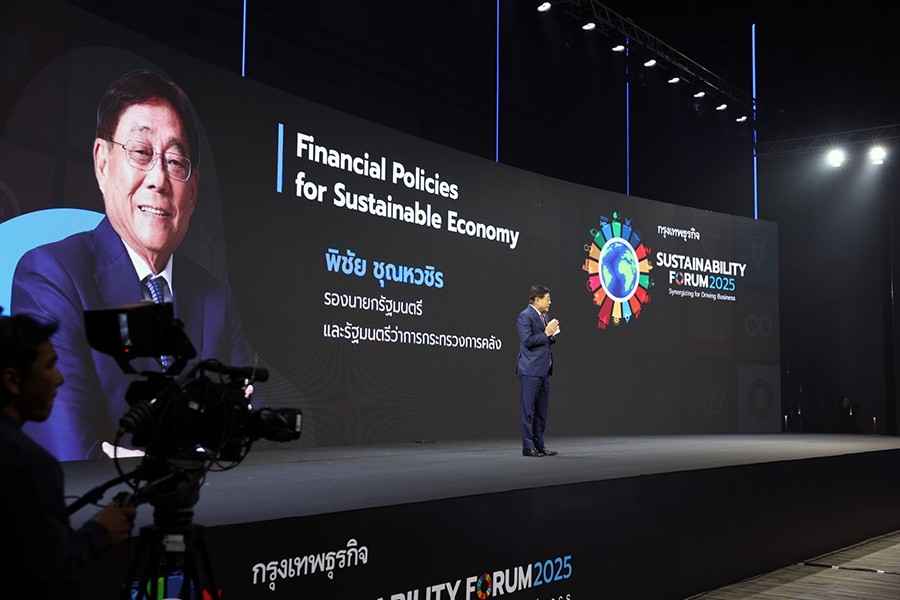 นายพิชัย ชุณหวชิร รองนายกรัฐมนตรีและรัฐมนตรีว่าการกระทรวงการคลัง กล่าวปาฐกถาพิเศษ ภายใต้หัวข้อ “Financial Policies for Sustainable Economy” ในงานเสวนา “Sustainability Forum 2025: Synergizing for Driving Business” จัดโดยหนังสือพิมพ์กรุงเทพธุรกิจ โดยงานนี้ นางสาวกุลยา ตันติเตมิท อธิบดีกรมสรรพสามิต ร่วมเสวนาหัวข้อ “Government’s Mechanisms to Achieve SDGs” ร่วมกับนายสุทธิเกตติ์ ทัดพิทักษ์กุล รองเลขาธิการคณะกรรมการส่งเสริมการลงทุน (บีโอไอ) นายปวิช เกศววงศ์ รองอธิบดีกรมการเปลี่ยนแปลงสภาพภูมิอากาศและสิ่งแวดล้อม และนายศรพล ตุลยะเสถียร รองผู้จัดการ หัวหน้าสายงานวางแผนกลยุทธ์องค์กร ตลาดหลักทรัพย์แห่งประเทศไทย ซึ่งงานดังกล่าวเป็นงานที่เปิดโอกาสให้ทุกภาคส่วนมาร่วมกันแลกเปลี่ยนกลยุทธ์และประสบการณ์การดำเนินงานเพื่อความยั่งยืน จัดขึ้นระหว่างวันที่ 3 – 4 ธันวาคม 2567 ณ พารากอน ฮอลล์ ชั้น 5 สยามพารากอน เมื่อวันที่ 3 ธันวาคม 2567