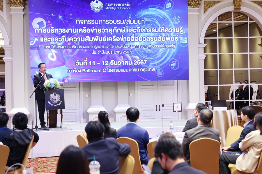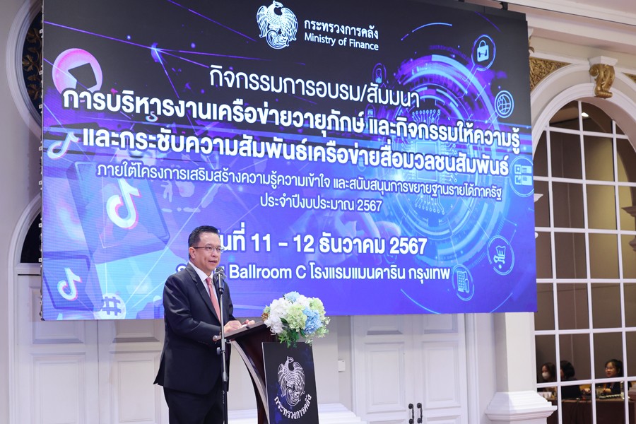 นายวินิจ วิเศษสุวรรณภูมิ รองปลัดกระทรวงการคลัง หัวหน้ากลุ่มภารกิจด้านรายได้ เป็นประธานเปิดกิจกรรมอบรม สัมมนาการบริหารงานเครือข่ายวายุภักษ์ และกิจกรรมให้ความรู้และกระชับความสัมพันธ์เครือข่ายสื่อมวลชนสัมพันธ์ ภายใต้โครงการเสริมสร้างความรู้ความเข้าใจและสนับสนุนการขยายฐานรายได้ภาครัฐ ประจำปีงบประมาณ 2567 ครั้งที่ 1 ณ โรงแรมแมนดาริน กรุงเทพฯ เมื่อวันที่ 11 ธันวาคม 2567