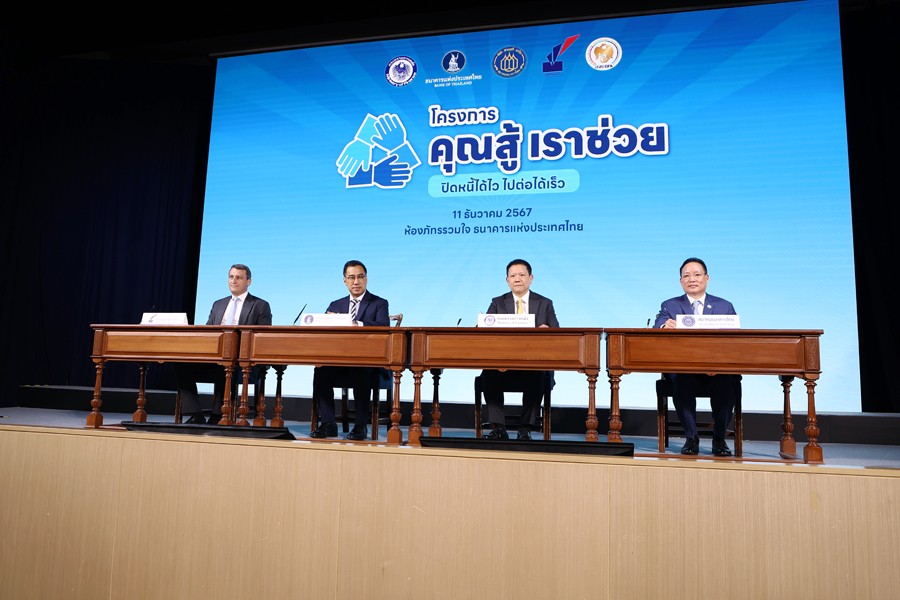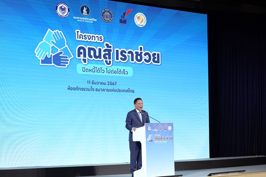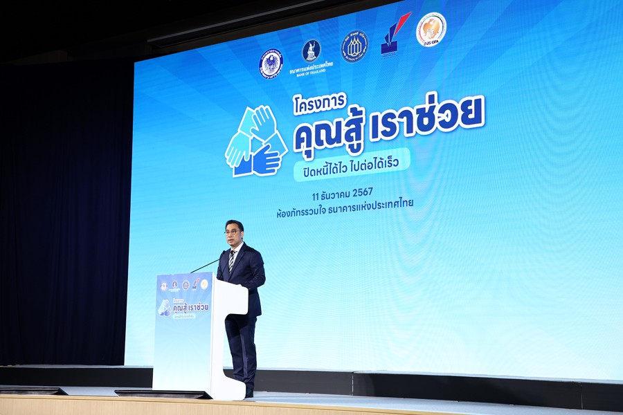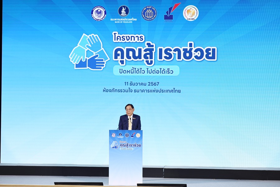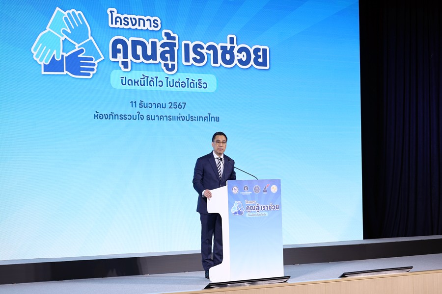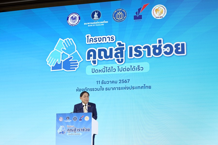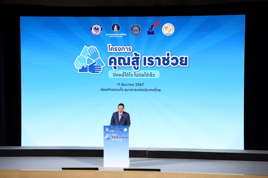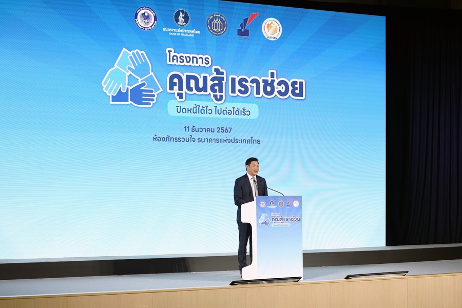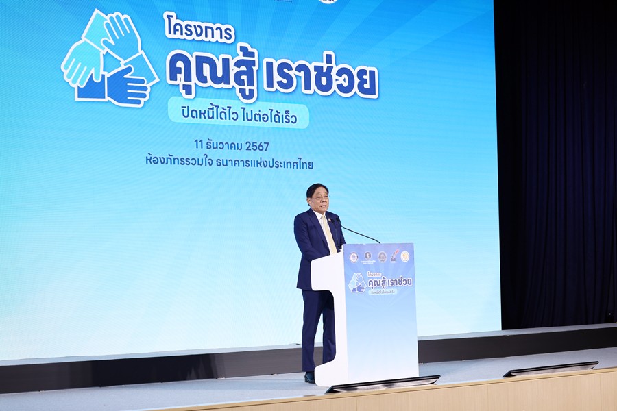 นายพิชัย ชุณหวชิร รองนายกรัฐมนตรีและรัฐมนตรีว่าการกระทรวงการคลัง เป็นประธานงานเปิดตัวโครงการ “คุณสู้ เราช่วย” เพื่อให้ความช่วยเหลือลูกหนี้รายย่อยและ SMEs โดยมีนายลวรณ แสงสนิท ปลัดกระทรวงการคลัง ร่วมพิธีลงนามบันทึกข้อตกลงความร่วมมือและหนังสือแสดงเจตนารมณ์ระหว่างกระทรวงการคลัง ธนาคารแห่งประเทศไทย สมาคมธนาคารไทย (TBA) และสมาคมธนาคารนานาชาติ (AIB) ณ ห้องประชุมภัทรรวมใจ อาคาร 2 ชั้น 2 ธนาคารแห่งประเทศไทย เมื่อวันที่ 11 ธันวาคม 2567