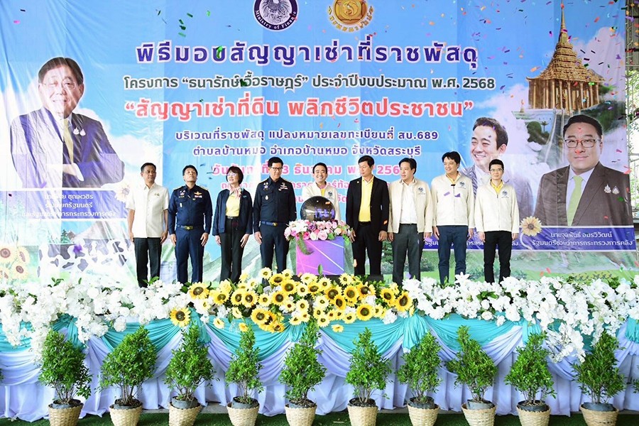 นายเผ่าภูมิ โรจนสกุล รัฐมนตรีช่วยว่าการกระทรวงการคลัง เป็นประธานพิธีมอบสัญญาเช่าที่ราชพัสดุ ประจำปีงบประมาณ พ.ศ. 2568 ภายใต้โครงการธนารักษ์เอื้อราษฎร์ “สัญญาเช่าที่ดิน พลิกชีวิตประชาชน” แปลงหมายเลขทะเบียน สบ.689 ตำบลบ้านหมอ อำเภอบ้านหมอ จังหวัดสระบุรี จำนวน 120 ราย เนื้อที่ประมาณ 46 – 1 – 94.4 ไร่ แบ่งเป็นเพื่ออยู่อาศัย จำนวน 106 ราย เนื้อที่ประมาณ 17 – 1 – 47.4 ไร่ และเพื่อการเกษตร จำนวน 14 ราย เนื้อที่ประมาณ 29 – 0 – 47.0 ไร่ ณ อาคารศูนย์ดาราศาสตร์ ท้องฟ้าจำลอง ตำบลบ้านหมอ อำเภอบ้านหมอ จังหวัดสระบุรี เมื่อวันที่ 23 ธันวาคม 2567 ทั้งนี้ ที่ผ่านมาได้ดำเนินการมอบสัญญาเช่าที่ราชพัสดุไปแล้วในจังหวัดหนองบัวลำภู จำนวน 34 ราย เนื้อที่ประมาณ 97 – 3 – 46.0 ไร่ แบ่งเป็นเพื่ออยู่อาศัย จำนวน 9 ราย เนื้อที่ประมาณ 3 – 1 – 75.0 ไร่ และเพื่อการเกษตร จำนวน 25 ราย เนื้อที่ประมาณ 94 – 1 – 71.0 ไร่