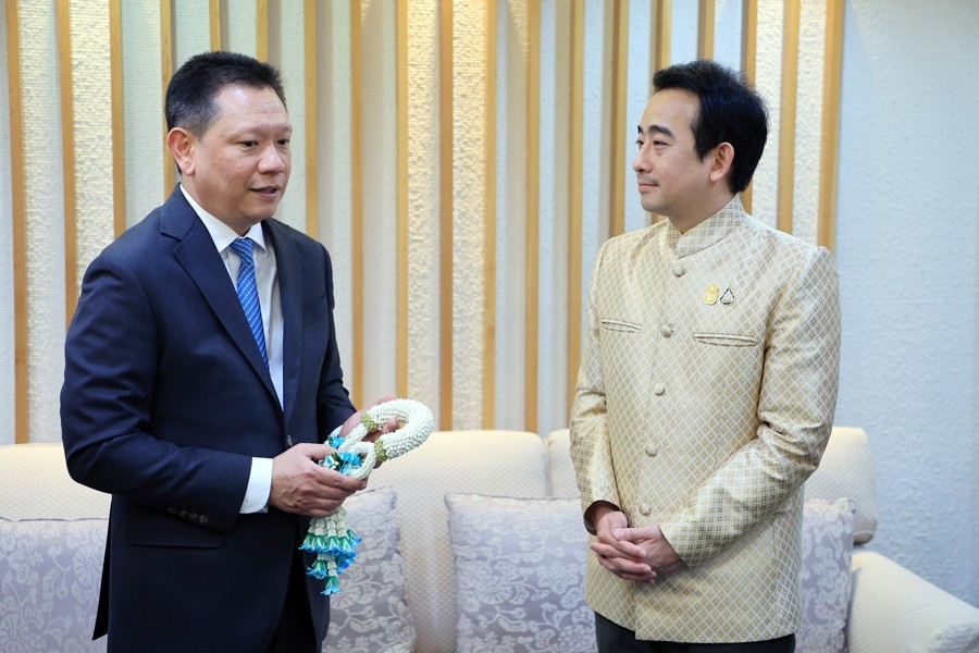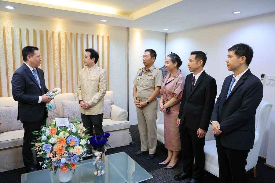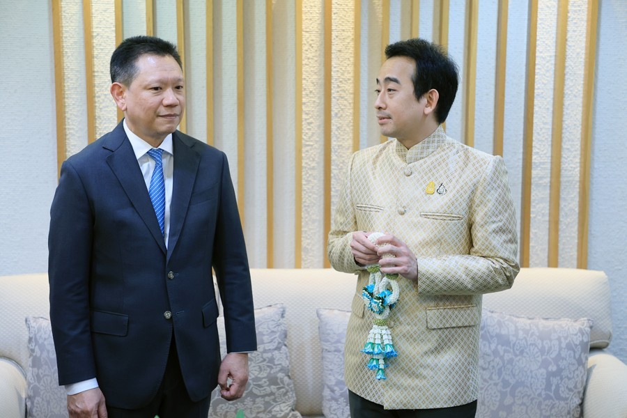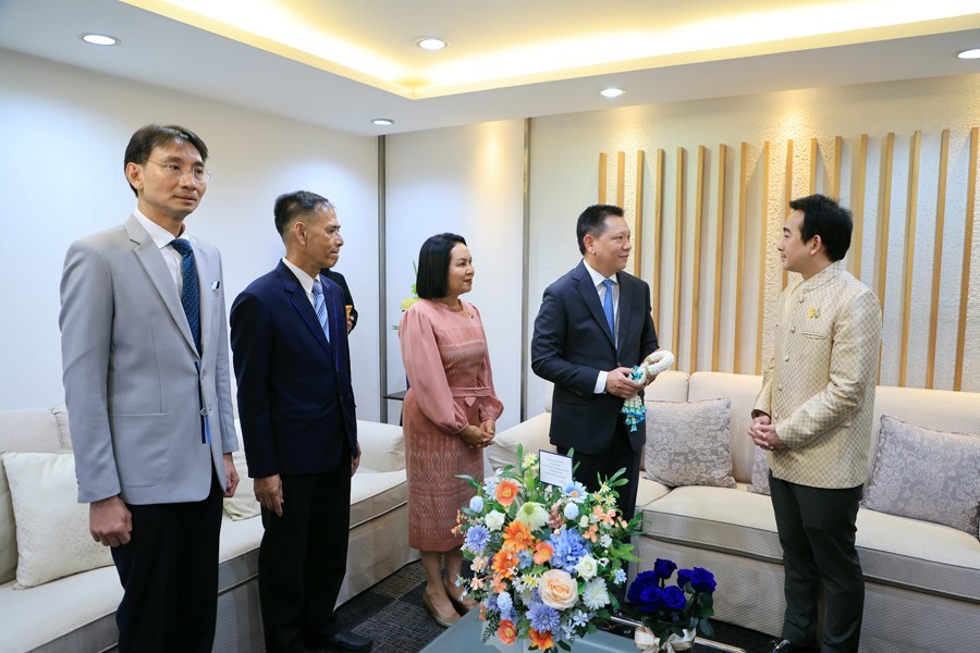 Mr.Lavaron Sangsnit, Permanent Secretary of the Ministry of Finance along with MOF’s top executives congratulated Mr. Paopoom Rojanasakul, on his appointment as Deputy Minister of Finance at the Deputy Minister of Finance Lounge, May 7, 2024.